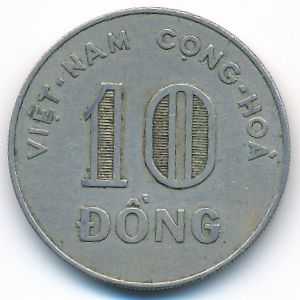KM#8 Vietnam, 10 dong Copper-Nickel, 25.5 mm., 5.5 g. Категории:. Obv: Denomination. Obv. Legend: VIET-NAM CONG-HOA. Rev: Rice stalks. Edge: Reeded. Информация о выпуске (подробности в каталоге):