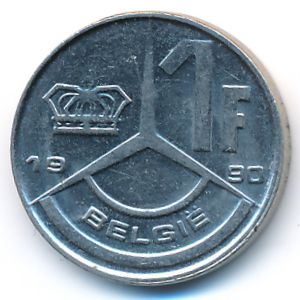 KM#171 Belgium, 1 franc Nickel plated Iron, 18 mm., 2.77 g. Категории:. Obv: Head, left, small mark lower right, dutch legend. Obv. Leg.: BOUDEWIJN I. Rev: Center symbol divides Crown at left from denomination at right and dates, legend in Dutch. Rev. Leg.: BELGIE. Информация о выпуске (подробности в каталоге):