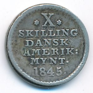 Danish West Indies, 10 skilling (1845 г.)