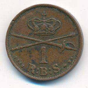KM#726 Denmark, 1 rigsbankskilling (1842 г.) Copper, 7.308 g. Категории:. Ruler: Christian VIII. Mint: Altona. Obverse: Bust right. Reverse: Crown above crossed sword and sceptre, value and date below. Смотрите подробное описание типа в каталоге. Уточните информацию о наличии этого товара по телефону +7 495 925-96-98.