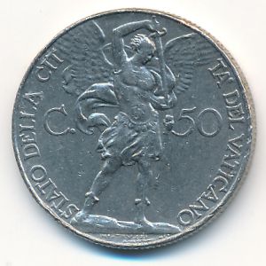 KM#4 Vatican City, 50 centesimi (1934 г.) Nickel Категории:. Obv: Crowned Arms. Rev: Archangel Michael divides value. Смотрите подробное описание типа в каталоге. Уточните информацию о наличии этого товара по телефону +7 495 925-96-98.