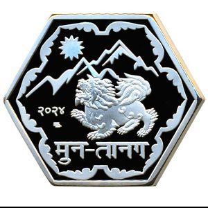 Снежный лев. Латунь, покрытая серебром. Вес 24,2 г. Диаметр 39 мм. Тираж 120 шт. Unusual. Монетовидный жетон. Тибет.