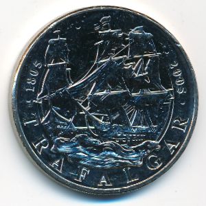 KM#1053 Great Britain, 5 pounds (2005 г.) Copper-Nickel, 38.6 mm., 28.28 g. Категории:. Ruler: Elizabeth II. Subject: Battle of Trafalgar. Obv: Head with tiara right. Obv. Legend: ELIZABETH • II D • G • REG • F • D. Obv. Designer: Ian Rank-Broadley. Rev: HMS Victory and HMS Temeraire at Trafalgar. Rev. Legend: TRAFALGAR. Rev. Designer: Clive Duncan. Edge: Reeded. Смотрите подробное описание типа в каталоге. Уточните информацию о наличии этого товара по телефону +7 495 925-96-98.