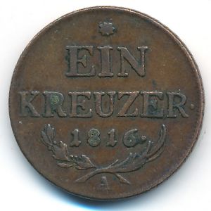 KM#2113 Austria, 1 kreuzer (1816 г.) Copper, 26.6 mm., 8.69 g. Категории:. Description Obverse: Crowned shield. Description Reverse: Value in German. Struck until 1852 with 1816 date. Смотрите подробное описание типа в каталоге. Уточните информацию о наличии этого товара по телефону +7 495 925-96-98.