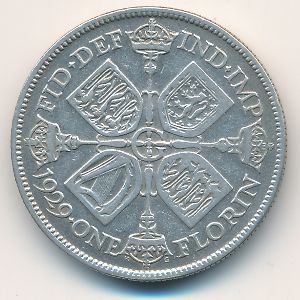 KM#834 Great Britain, 1 florin (1929 г.) 0.5000 Silver, 28.3 mm., 11.3104 g. Категории:. Ruler: George V. Obv: Head left. Rev: Cross of crowned sceptres, shields in angles. Смотрите подробное описание типа в каталоге. Уточните информацию о наличии этого товара по телефону +7 495 925-96-98.