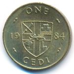 Obv: Cowrie shell. Rev: Rampant lion at center of quartered shield dividing date and denomination.