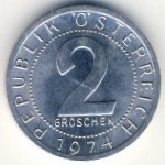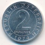 Austria, 2 groschen, 1974 Посмотреть подробную информацию о Austria, 2 groschen, 1974 Посмотреть очень большое изображение Austria, 2 groschen, 1974 Посмотреть другие изображения