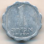 Description Obverse: Country name in Arabic and Hebrew to left and below oat sprigs Description Reverse: Value and date in Hebrew Shape: Scalloped