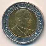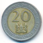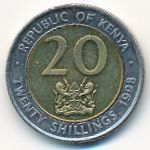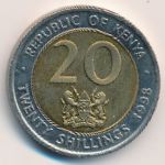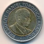 Obv: Value above national arms. Rev: Bust of President Daniel Toroitich Arap Moi right.