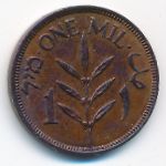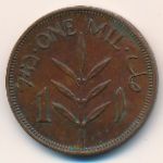 Obv: Inscription PALESTINE, in English, Hebrew and Arabic. Rev: Value, plant. Edge: Plain.