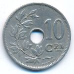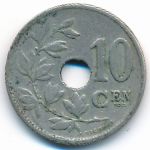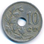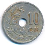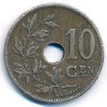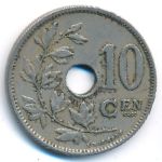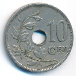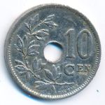 KM#86 Belgium, 10 centimes Copper-Nickel, 22 mm., 4 g. Obv: Center hole within crowned monogram, date below, legend in Dutch. Obv. Leg.: BELGIE. Rev: Spray of leaves to left of center hole, denomination to right, plain field above 10. Edge: Plain. |