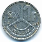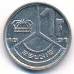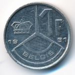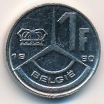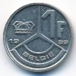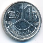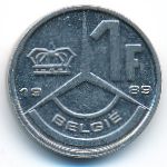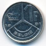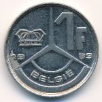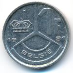KM#171 Belgium, 1 franc Nickel plated Iron, 18 mm., 2.77 g. Obv: Head, left, small mark lower right, dutch legend. Obv. Leg.: BOUDEWIJN I. Rev: Center symbol divides Crown at left from denomination at right and dates, legend in Dutch. Rev. Leg.: BELGIE. |
