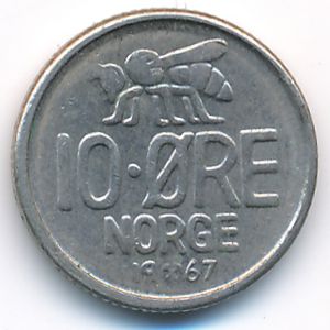 KM#411 Норвегия, 10 эре Медь-Никель, 15 мм, 1.5 г Категории: Животные, Насекомые. Медовая пчела. Информация о выпуске (подробности в каталоге):