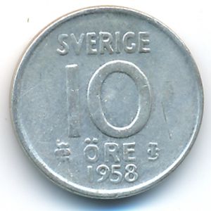 Швеция, 10 эре (1958 г.) Посмотреть подробную информацию о Швеция, 10 эре (1958 г.) Посмотреть очень большое изображение Швеция, 10 эре (1958 г.) Посмотреть другие изображения