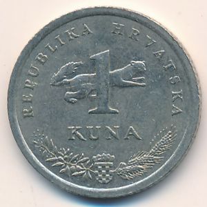 KM#9.1 Хорватия, 1 куна Медь-Никель, 22.5 мм, 5 г Категории: Животные, Птицы. Соловей. Примечание: монеты с датой "1993" без точки после даты. «SLAVUJ». Информация о выпуске (подробности в каталоге):