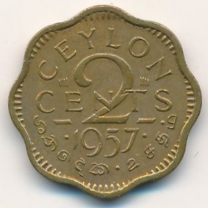 KM#124 Цейлон, 2 цента Латунь Категории: Необычная форма. Королева Елизавета II. Информация о выпуске (подробности в каталоге):