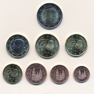 Набор из 8 монет Испании 2019 года номиналами 1 евроцент, 2 евроцента, 5 евроцентов, 10 евроцентов, 20 евроцентов, 50 евроцентов, 1 евро, 2 евро. UNC, из ролов.