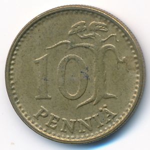 KM#46 Финляндия, 10 пенни Алюминий-Бронза, 20 мм, 3 г Категории: Растения. Дерево. Информация о выпуске (подробности в каталоге):