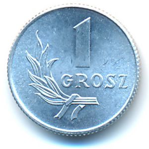 Y#39 Польша, 1 грош Алюминий, 14.7 мм, 0.5 г Категории: Без тематики. Аверс: в центре – герб страны, некоронованный орел. Круговая надпись: RZECZPOSPOLITA POLSKA, под гербом – год выпуска - 1949. Дата и надпись разделены точками. Реверс: в центре – номинал в две строки 1 GROSZ, ниже – лавровая ветвь с переброшенной через неё лентой. Гурт: рубчатый. Информация о выпуске (подробности в каталоге):