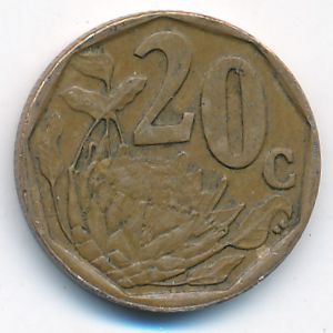 KM#342 ЮАР, 20 центов Бронза-Сталь, 19 мм, 3.48 г Категории: Растения. «iNingizimu Afrika» Информация о выпуске (подробности в каталоге):