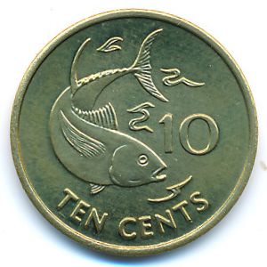KM#48.2 Сейшелы, 10 центов Латунь, 21 мм, 3.34 г Категории: Животные, Рыбы, Юбилейные. Информация о выпуске (подробности в каталоге):