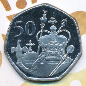 Британская Антарктика, 50 пенсов Медь-Никель, 27.3 мм, 8 г Категории: Выдающиеся личности, Королевская семья, Елизавета II, Необычная форма, Юбилейные. 95 лет со дня рождения королевы Великобритании Елизаветы II. Аверс: портрет Ее Величества королевы Великобритании Елизаветы II. По окружности расположена легенда: «BRITISH ANTARCTIC TERRITORY» и год эмиссии монеты - «2021». Здесь же расположен знак монетного двора «PM». Реверс: королевские регалии британской монархии: Корона святого Эдуарда, скипетр, держава, ампулла (Ampulla, 1661) - сосуд в форме орла с распростёртыми крыльями, используемый во время церемонии коронации для помазания и коронационная ложечка. Слева, в верхней части, указан номинал – «50» (PENCE). Информация о выпуске (подробности в каталоге):