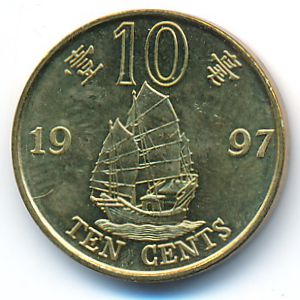 KM#72 Гонконг, 10 центов Сталь, покрытая латунью, 17.55 мм Категории: Растения, Транспорт, Корабли. Парусник. Баугиния, цветок. Информация о выпуске (подробности в каталоге):