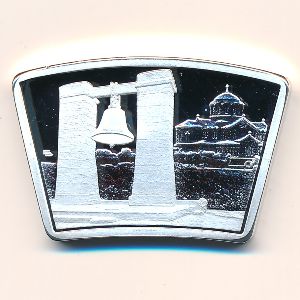 Севастополь., 200 рублей Латунь, покрытая серебром, 20.95 г Категории: Unusual, Архитектура, География, Необычная форма, Транспорт, Корабли. UNUSUAL. Памятник затопленным кораблям. Херсонес: колокол, собор Святого Владимира. 39.2 мм х 27 мм Россия. Информация о выпуске (подробности в каталоге):
