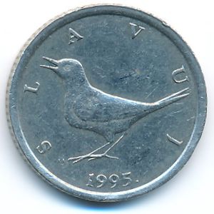 KM#9.1 Хорватия, 1 куна Медь-Никель, 22.5 мм, 5 г Категории: Животные, Птицы. Соловей. Примечание: монеты с датой "1993" без точки после даты. «SLAVUJ». Информация о выпуске (подробности в каталоге):