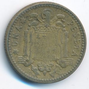 KM#775 Испания, 1 песета Алюминий-Бронза, 21 мм Категории: Без тематики. Год чеканки указан на звездах рядом с надписью «UNA». Информация о выпуске (подробности в каталоге):
