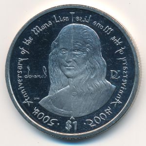 Виргинские острова, 1 доллар Медь-Никель Категории: Выдающиеся личности, Искусство, Юбилейные. 500-летие картины Мона Лизы Леонардо да Винчи. Информация о выпуске (подробности в каталоге):