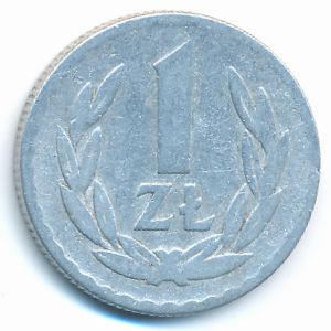 Y#45а Польша, 1 злотый Алюминий, 25 мм, 2.12 г Категории: Без тематики. Аверс: В центре – герб страны, некоронованный орел. Круговая надпись: RZECZPOSPOLITA POLSKA, под гербом – год выпуска. Надпись и дата разделены точками. Вдоль канта обод из полукругов. Реверс: В центре – номинал в две строки "1 ZŁ", вокруг – лавровый венок перехваченный в центре Х-образной лентой. Вдоль канта обод из полукругов. Информация о выпуске (подробности в каталоге):