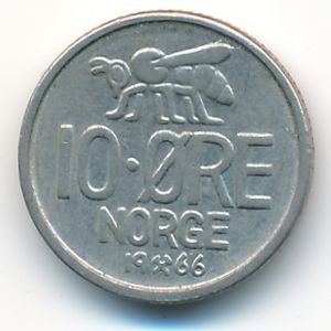 KM#411 Норвегия, 10 эре Медь-Никель, 15 мм, 1.5 г Категории: Животные, Насекомые. Медовая пчела. Информация о выпуске (подробности в каталоге):