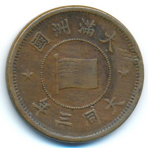 Y#2 Маньчжоу-Го, 1 фень (1934 г.) Бронза, 24 мм, 4.9 г Категории: Без тематики. 國洲滿大 年三同大. Смотрите подробное описание типа в каталоге.