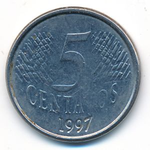 KM#632 Бразилия, 5 сентаво (1997 г.) Нержавеющая сталь, 21 мм, 3.27 г Категории: Без тематики. Смотрите подробное описание типа в каталоге.