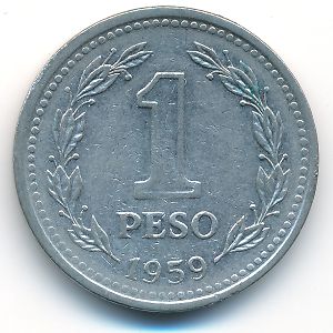 KM#57 Аргентина, 1 песо Сталь, плакированная никелем, 25 мм, 6.41 г Категории: Без тематики. Информация о выпуске (подробности в каталоге):