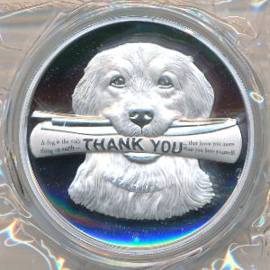 Ниуэ, 2 доллара Серебро, 40 мм, 31.1 г Категории: Без тегов. Аверс: маска королевы Елизаветы II. Реверс: собака с газетой. Информация о выпуске (подробности в каталоге):