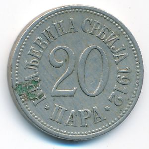 Сербия, 20 пар (1912 г.) Посмотреть подробную информацию о Сербия, 20 пар (1912 г.) Посмотреть очень большое изображение Сербия, 20 пар (1912 г.) Посмотреть другие изображения