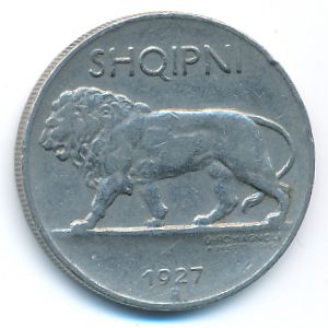 KM#3 Албания, 1/4 лека (1927 г.) Никель, 21.6 мм, 3.9 г Категории: Без тематики. Дубовая ветвь, лев. Смотрите подробное описание типа в каталоге.