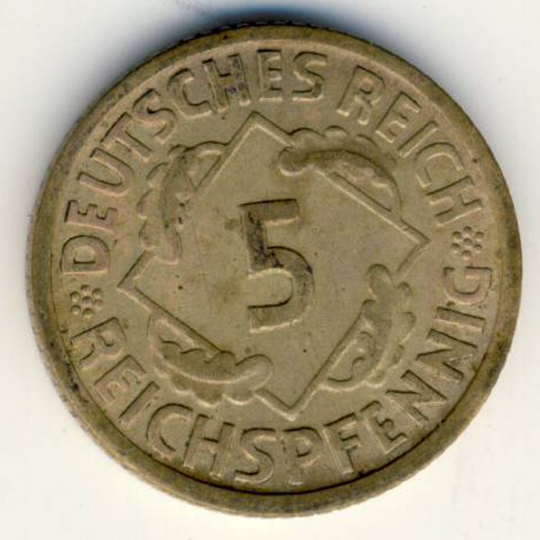 Увеличенное изображение Веймарская республика, 5 рейхспфеннигов (1935 г.)