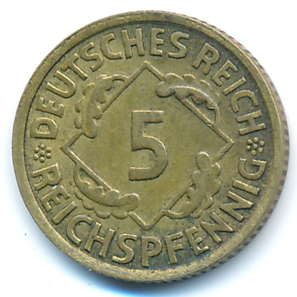 Увеличенное изображение Веймарская республика, 5 рейхспфеннигов (1935 г.)