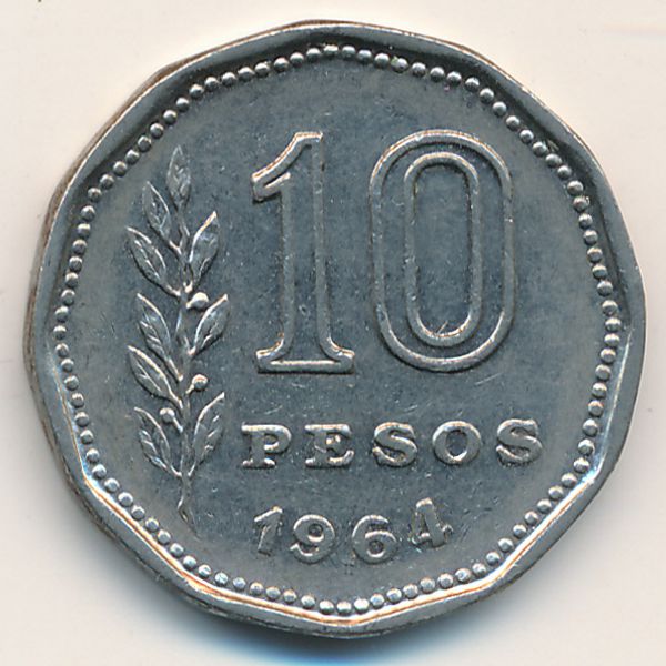 Увеличенное изображение Аргентина, 10 песо (1964 г.)