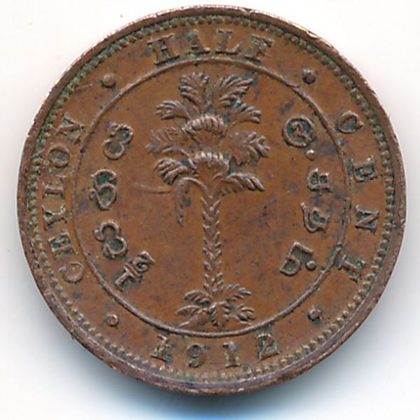 Увеличенное изображение Цейлон, 1/2 цента (1912 г.)