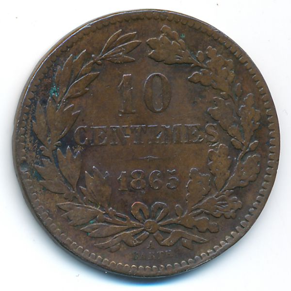 Увеличенное изображение Люксембург, 10 сентим (1865 г.)