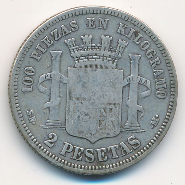 Увеличенное изображение Испания, 2 песеты (1869 г.)