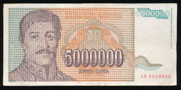Увеличенное изображение Югославия, 5000000 динаров (1993 г.)