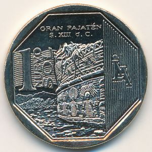 KM#361 Перу, 1 новый соль Медь-Никель-Цинк, 25.5 мм, 7.32 г Категории: Юбилейные. Археологический памятник Гран-Пахатен. Серия «Богатство и гордость Перу». Информация о выпуске (подробности в каталоге):
