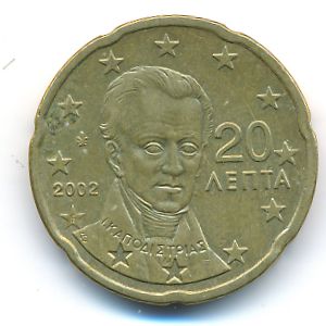 KM#185 Греция, 20 евроцентов Латунь, 22.25 мм, 5.73 г Категории: Выдающиеся личности, Евро. Иоанн Каподистрия, русский и греческий государственный деятель, министр иностранных дел России (1816—1822 годы) и первый правитель независимой Греции (1827—1831 годы). Информация о выпуске (подробности в каталоге):