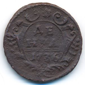 KM#188 Анна (1730—1740), Деньга (1736 г.) Медь, 8.19 г Категории: Без тематики. Смотрите подробное описание типа в каталоге.