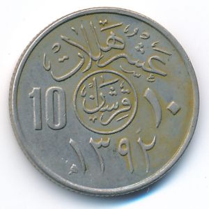 KM#46 Саудовская Аравия, 10 халала (1972 г.) Медь-Никель, 21 мм, 4 г Категории: Без тематики. Смотрите подробное описание типа в каталоге.